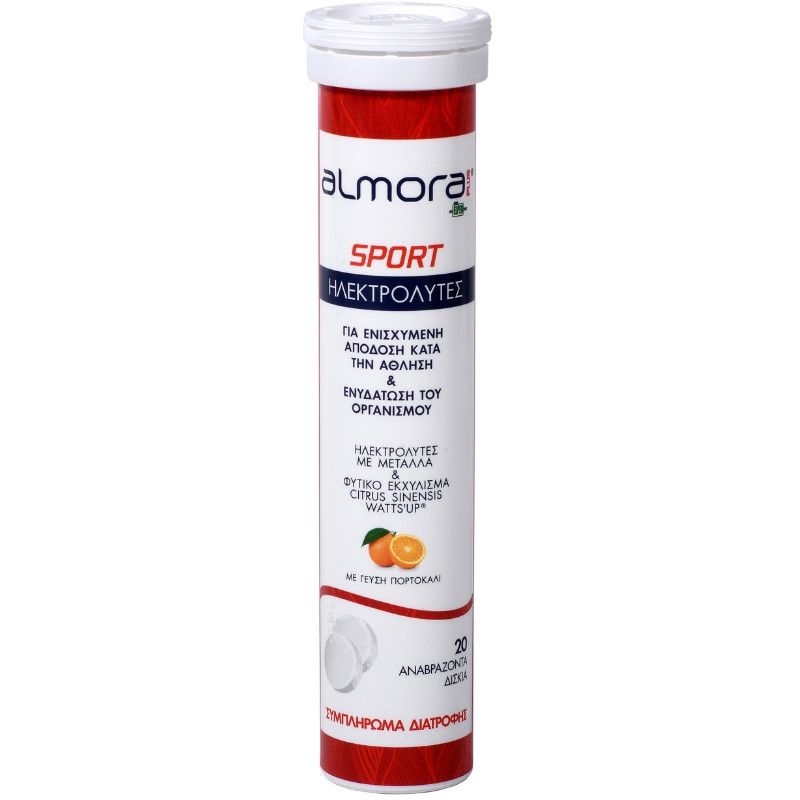 To almora PLUS SPORT είναι συμπλήρωμα διατροφής σε αναβράζουσα μορφή με συνδυασμό Ηλεκτρολυτών (Na, K, Cl), Ασβεστίου (Ca), Μαγνησίου Mg) και του φυτικού εκχυλίσματος Citrus sinensis.