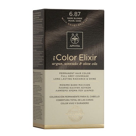 Permanent Hair Color Cream 6.87 INCI UE-(USA): aqua (water), laureth-3, cetearyl alcohol, laureth-4, polysorbate 80, ethanolamiPerne, toluene-2,5-diamine sulfate, glycol distearate, sorbitan stearate, sodium C14-16 olefin sulfonate, cocamidopropyl betaine, glycerin, glyceryl stearate se, cocos nucifera oil (cocos nucifera (coconut) oil), glyceryl isostearate, aminomethyl propanol, oleic acid, stearic acid, sorbitan oleate, 4-chlororesorcinol, peg-40 hydrogenated castor oil, polyquaternium-22, hydrogenated castor oil, ceteareth-20, taurine, palmitic acid, xylitol, sodium sulfite, sodium hydrosulfite, cera alba (beeswax), lecithin, tetrasodium edta, ceteareth-33, erythorbic acid, linum usitatissimum extract (linum usitatissimum (linseed) seed extract), argania spinosa kernel oil*, etidronic acid, olea europaea fruit oil (olea europaea (olive) fruit oil)*, persea gratissima oil (persea gratissima (avocado) oil)*, helianthus annuus seed oil (helianthus annuus (sunflower) seed oil)*, mel extract (honey extract)*, rosmarinus officinalis extract (rosmarinus officinalis (rosemary) leaf extract)*, benzyl alcohol, potassium sorbate, sodium benzoate, parfum (fragrance), phenyl methyl pyrazolone, p-methylaminophenol sulfate, m-aminophenol,