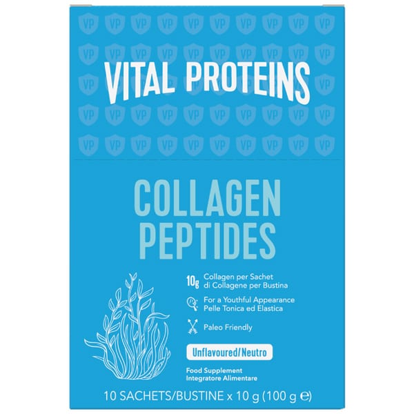 To Vital Proteins Collagen Peptides Sachet Box 10x10g παρέχει κολλαγόνο σε Πεπτίδια από Βοοειδή.