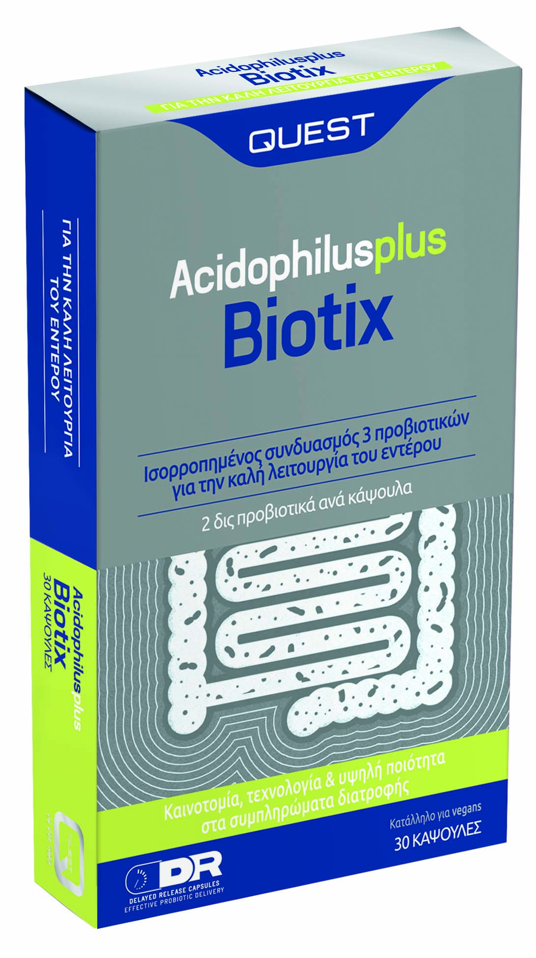 Το Acidophilus Plus Biotix της Quest σχεδιάστηκε για όσους έχουν ανάγκη ρύθμισης της λειτουργίας του εντέρου και του πεπτικού τους. Είναι απαραίτητο για άτομα με γαστρεντερικές διαταραχές, τυμπανισμό ή άτομα που λαμβάνουν αντιβιοτικά.