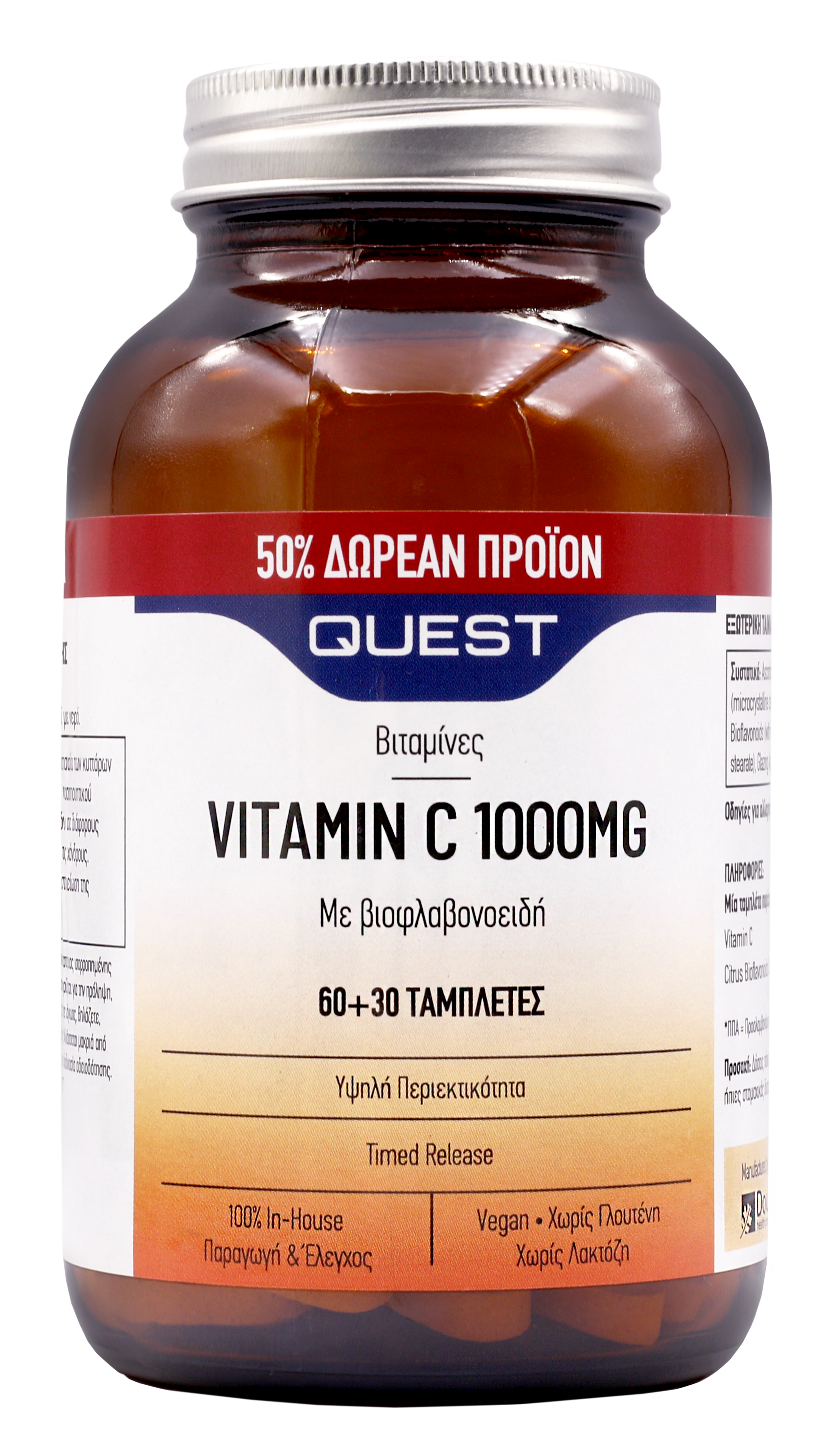 Το Vitamin C 1000mg της Quest είναι συμπλήρωμα διατροφής και δεν υποκαθιστά μια ισορροπημένη διατροφή. Αρ. Γν. ΕΟΦ: 29901/13-05-2005.