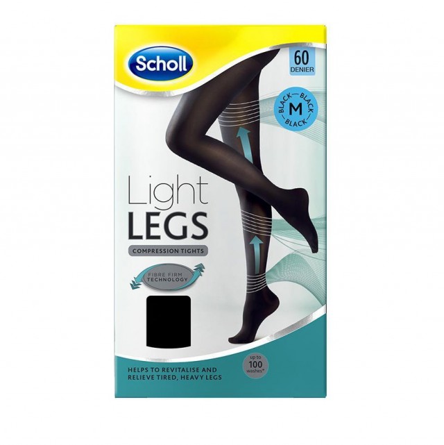 Το Light Legs Καλσόν Συμπίεσης της Scholl σχεδιάστηκε με την τεχνολογία Fibre firm, όπου βοηθά στην ενίσχυση της κυκλοφορίας του αίματος και δίνει τέλεια διαμορφωμένα πόδια. Η τεχνολογία Scholl Fiber εφαρμόζει πίεση σε στοχευμένες περιοχές από τον αστράγαλο προς τα πάνω με σκοπό να βοηθήσει στην αναζωογόνηση και ανακούφιση των κουρασμένων βαριών ποδιών.Η συμπίεση συμβάλλει στην αύξηση της κυκλοφορίας σε όλο το μήκος των ποδιών.Διαρκούν έως και 100 πλύσεις χωρίς να χάνουν σχήμα και χρώμα.
