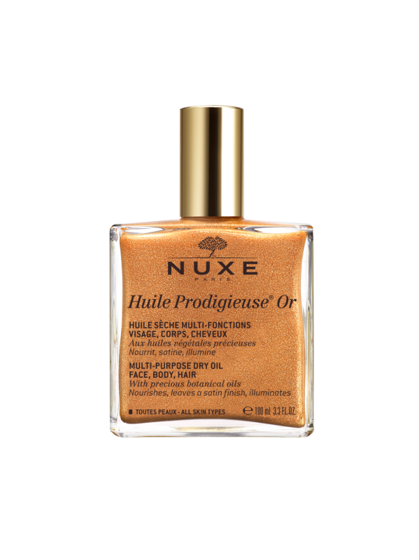 Ξηρό λάδι ενυδάτωσης που δεν αφήνει ίχνος λιπαρότητας. Ενυδατώνει και προστατεύει πρόσωπο σώμα και μαλλιά. Πλούσιο σε φυτικά έλαια και βιταμίνη Ε. Υπέροχο, αισθησιακό άρωμα. Η σύνθεση είναι εμπλουτισμένη με πέρλες φυσικού μαργαριταριού πού δίνουν μία υπέροχη και διακριτική λάμψη στο δέρμα. Ιδανικό σε μαυρισμένο δέρμα. Σύνθεση εμπλουτισμένη με ιριδίζοντα μικροσωματίδια για διακριτική λάμψη. Ενυδατικό και αντιγηραντικό ξηρό έλαιο προσώπου, σώματος και μαλλιών. Πλούσιο σε φυσικά έλαια και σε βιταμίνη Ε. Κατάλληλο για κάθε τύπο επιδερμίδας και κάθε ηλικία. Το πρόσωπο και το σώμα σας μένει απαλό και μεταξένιο. Τα μαλλιά σας είναι απαλά και λάμπουν από υγεία. Το 95% των συστατικών είναι φυσικής προέλευσης, εκ των οποίων ένας μοναδικός συνδυασμός 30% πολύτιμων φυτικών ελαίων (borage, βαλσαμόχορτο, γλυκό αμύγδαλο, καμέλια, φουντούκι και macadamia) και βιταμίνης Ε που θρέφει, αναδομεί και απαλύνει το πρόσωπο, το σώμα και τα μαλλιά σε ένα μόνο βήμα. Τα αισθησιακά χρυσά σωματίδια αφήνουν μια λεπτή λάμψη στο δέρμα σας. Χωρίς συντηρητικά. Διατίθεται και σε συσκευασία των 50ml: Huile Prodigieuse OR