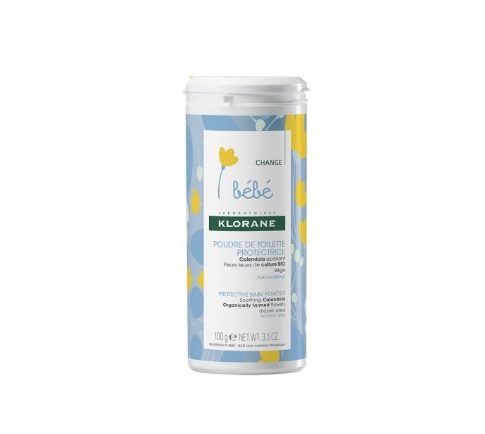 Poudre de toilette protectrice. Βρέφη και μεγαλύτερα μωρά. Μηρογεννητική περιοχή. Mε προστατευτική και καταπραϋντική Καλέντουλα που εκχυλίζεται από άνθη βιολογικής καλλιέργειας. Η μεταλλική σύνθεσή της με απαλό και χαλαρωτικό άρωμα απορροφά την υγρασία, καταπραΰνει τις μικρές κοκκινίλες και τους ερεθισμούς αφήνοντας ένα προστατευτικό φιλμ που χαρίζει απαλότητα. Κλινικά ελεγμένο υπό παιδιατρικό έλεγχο. Klorane bébé, 50 χρόνια τεχνογνωσίας και ασφάλειας.