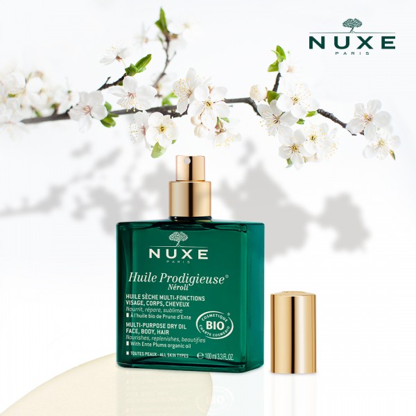 Το best seller ξηρό λάδι περιποίησης για πρόσωπο σώμα και μαλλιά από τη σειρά Huile Prodigieuse, τώρα και πιστοποιημένο βιολογικό με 100% συστατικά φυσικής προέλευσης εκ των οποίων το 42% είναι βιολογικής καλλιέργειας.