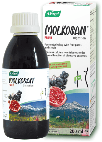 Το Molkosan είναι εξαιρετικά ευεργετικό για την εξισορρόπηση της φυσιολογικής λειτουργίας του πεπτικού συστήματος σε άτομα που υποφέρουν από δυσπεψία, δυσανεξίες σε τροφές και στη λακτόζη και από μη φυσιολογική κινητικότητα του εντέρου, αφού το L (+) γαλακτικό οξύ συμβάλλει στη διάσπαση των πρωτεϊνών και της λακτόζης, ενώ ταυτόχρονα βοηθάει σημαντικά τον οργανισμό στην απορρόφηση πολύτιμων μετάλλων όπως ασβέστιο, σίδηρος, ψευδάργυρος, μαγνήσιο και βελτιώνει τη λειτουργία των ενζύμων. Ενισχύει την εντερική χλωρίδα και είναι κατάλληλο για άτομα που υποφέρουν από υπερανάπτυξη του μύκητα candida και άλλων παθογόνων μικροοργανισμών μετά από αυξημένη χρήση αντιβιοτικών και άλλων φαρμάκων.
