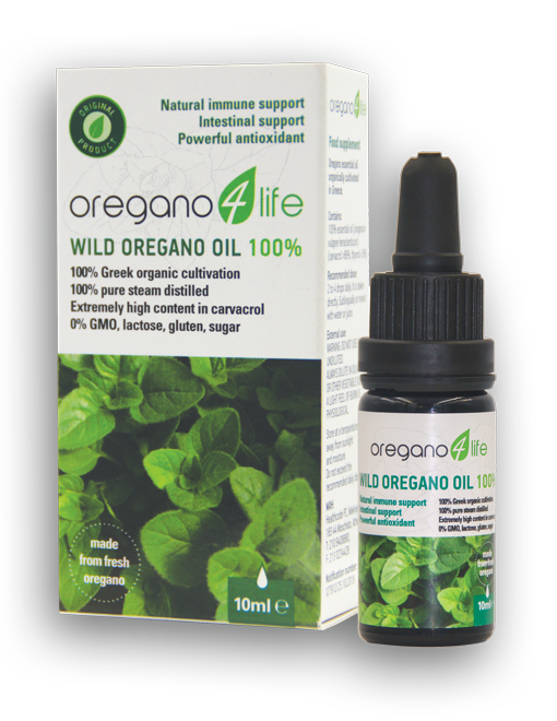 Το Wild Oregano oil 100% είναι αιθέριο έλαιο βιολογικά καλλιεργούμενης στην Ελλάδα ρίγανης (Origanum vulgare heracleoticum) που αποστάζεται αποκλειστικά με ατμό, χωρίς χρήση διαλυτών και άλλων χημικών ουσιών. Η υψηλή του περιεκτικότητα σε καρβακρόλη (>86%) και η χαμηλή του περιεκτικότητα σε θυμόλη (3%) προσδίδουν τις εξαιρετικά ευεργετικές ιδιότητες του αιθέριου ελαίου ρίγανης στον ανθρώπινο οργανισμό.