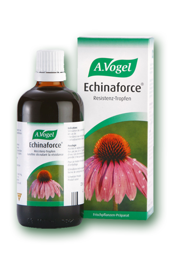 Κατάλληλο για: θωράκιση του οργανισμού σε περιόδους έξαρσης των ιώσεων και της γρίπης ενίσχυση του ανοσοποιητικού συστήματος εύρυθμη λειτουργία του ανώτερου αναπνευστικού συστήματος εύρυθμη λειτουργία του ουροποιητικού συστήματος Περιγραφή - τρόπος δράσης Η εχινάκεια είναι το πλέον διαδεδομένο βότανο σε Ευρώπη και Αμερική για την ταχύτερη ανακούφιση των συμπτωμάτων κρυολογήματος, συναχιού και κάθε είδους λοίμωξης. Το είδος της εχινάκειας που χρησιμοποίησε ο Alfred Vogel στα σκευάσματά του (Echinacea purpurea) έχει φανεί ότι είναι το πιο αποτελεσματικό και ασφαλές στον κόσμο. Το σκεύασμα Echinaforce περιέχει βάμμα/ταμπλέτες 100% βιολογικής φρέσκιας Echinacea purpurea το οποίο περιέχει μέρη από ολόκληρο το φυτό. Η βασική δραστική ουσία της Echinacea purpurea είναι τα αλκυλαμίδια, τα οποία αφήνουν αίσθηση καψίματος στο στόμα. Κλινικές μελέτες έχουν δείξει ότι η χρήση ολόκληρου του φυτού κατά τη διαδικασία παρασκευής του Echinaforce, εξασφαλίζει την παρουσία όλων των λιποδιαλυτών και υδατοδιαλυτών συστατικών του φρέσκου βοτάνου, καθιστώντας το με τον τρόπο αυτό πολύ πιο αποτελεσματικό από αντίστοιχα σκευάσματα.