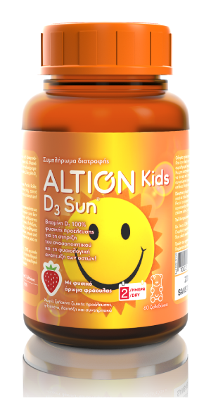Το ALTION Kids D3 Sun® είναι το πρώτο συμπλήρωμα διατροφής Βιταμίνης D3 σε ζελεδάκι με φυσική γεύση φράουλα.