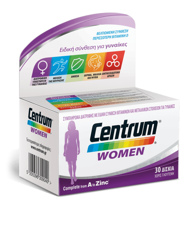 Οι γυναίκες έχουν διαφορετικές διατροφικές ανάγκες από τους άνδρες. Προκειμένου να ανταποκριθούμε σε αυτές τις ανάγκες του γυναικείου οργανισμού, χρειάζεται φροντίδα και εξειδίκευση. Αυτή είναι και η βάση της σύνθεσης του Centrum Women, η οποία έχει διαμορφωθεί έτσι ώστε να καλύπτει τις καθημερινές διατροφικές ανάγκες της γυναίκας.