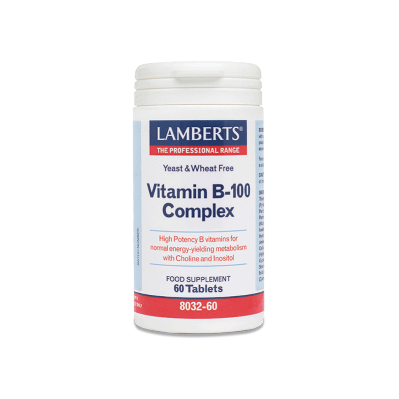 To B-100 Complex της Lamberts, αποτελεί μια εξειδικευμένη διατροφική φόρμουλα υψηλής ισχύος που παρέχει το σύνολο των βιταμινών του συμπλέγματος Β. Αρκετές από τις βιταμίνες του συμπλέγματος Β συμβάλλουν*: