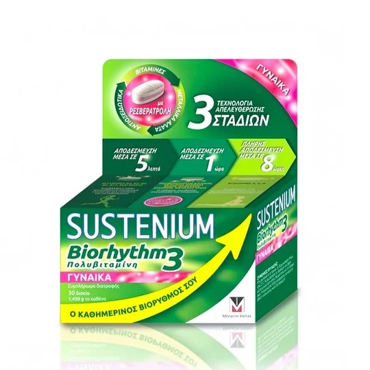 Το Sustenium Biorhythm 3 Multivitamin είναι ένα πολυβιταμινούχο και πλούσιο σε ιχνοστοιχεία συμπλήρωμα διατροφής που χορηγείται σε περίπτωση ελλείψεων ή αυξημένων αναγκών του σώματος για τα μικροθρεπτικά συστατικά που περιέχονται στο προϊόν.