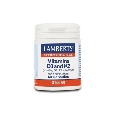 Νεότερα επιστημονικά δεδομένα καταδεικνύουν την συνεργική δράση της βιταμίνης Κ (συγκεκριμένα της βιταμίνης Κ2) και της βιταμίνης D και συνιστούν στους Επαγγελματίες της Υγείας παρακολούθηση τη λήψης και των δύο αυτών βιταμινών. Πιο συγκεκριμένα η Βιταμίνη D συμβάλλει*: • στην φυσιολογική λειτουργία του ανοσοποιητικού συστήματος • στην φυσιολογική απορρόφηση και χρησιμοποίηση του ασβεστίου και του φωσφόρου • στην διατήρηση των φυσιολογικών επιπέδων ασβεστίου στο αίμα • στην διατήρηση της φυσιολογικής κατάστασης των οστών • στην φυσιολογική κατάσταση των μυών • στην διατήρηση της φυσιολογικής κατάστασης των δοντιών • στην κυτταρική διαίρεση ενώ η βιταμίνη Κ συμβάλλει*: • στη φυσιολογική πήξη του αίματος • στη διατήρηση της φυσιολογικής κατάστασης των οστών Το σκεύασμα D3 και K2 της Lamberts αποδίδει 1000 μονάδες (25μg) φυσικής βιταμίνης D3 (ως χοληκαλσιφερόλη) καθώς και την εντυπωσιακή ποσότητα των 90μg (καθαρής και απαλλαγμένης από τα cis-ισομερή της) Βιταμίνη Κ2, στη φυσική της μορφή (ως μενακινόνη/ΜΚ-7). Σε αντίθεση με την πλειονότητα των σκευασμάτων που χρησιμοποιούν Κ2 από προερχόμενη από το νάττο (Ιαπωνέζικα φασόλια σόγιας), η Κ2 της Lamberts παρασκευάζεται από ρεβίθια μέσω μιας ειδικής διαδικασίας ζύμωσης. Το γεγονός αυτό διασφαλίζει ότι το σκεύασμά μας δεν περιέχει ως διατροφικά αλλεργιογόνα, σόγια και υποπροϊόντα γάλακτος. Όπως όλα τα σκευάσματα της Lamberts, παρασκευάζεται εντός του Ηνωμένου Βασιλείου σύμφωνα με τα αυστηρά πρότυπα της Φαρμακευτικής GMP (Pharmaceutical GMP).
