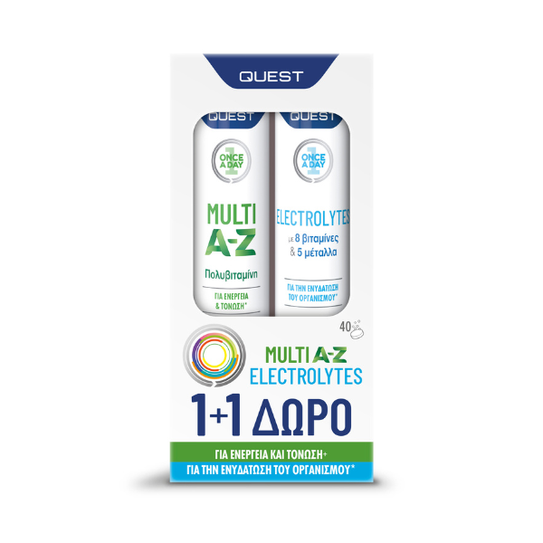 Quest Once a Day Set Multi A-Z Πολυβιταμίνη για Ενέργεια & Τόνωση 20 αναβράζουσες ταμπλέτες + Δώρο Electrolytes με 8 Βιταμίνες & 5 Μέταλλα 20 αναβράζουσες ταμπλέτες